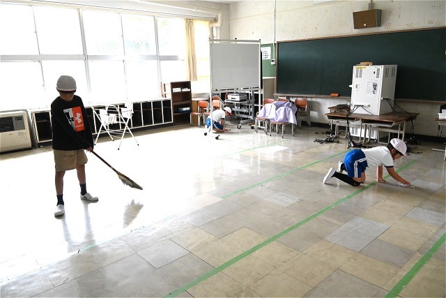 昨日の昼に後期縦割り班集会がありました。新しい班のメンバーが集まり、自己紹介や掃除場所の確認などを行った後、ゲームを行いました。班ごとにつながったチームでジャンケン列車をやってとても盛り上がりました。そして掃除です。どの班も時間いっぱい丁寧にやっていました。子どもたちに人数には広すぎる校舎ですが、後期も頑張ってきれいにしてほしいですね。