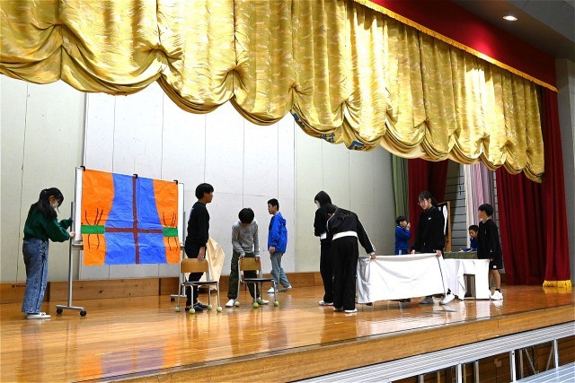 明日は総練習になりました。学習発表会では、各学年の発表はもちろん、これを支える係活動も大切です。今年は6年生の人数が少ないため、5年生も加えて係編成をしています。進行・放送、会場、舞台、照明の4つの係があり、昨日は総練習の時の動きを確認していました。どの係も準備はばっちりのようです。