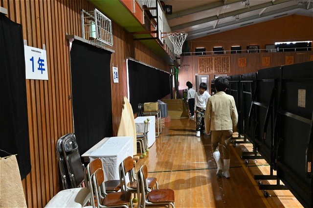本番を楽しみにしていただくために、演技中の写真は載せません。スローガン以外の2枚の写真は、総練習が終わった後に6年生の子どもたちが後片付けしている様子と、道具置き場の様子です。