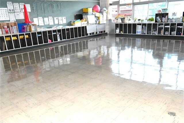 放課後は職員でワックス掛けを行いました。見違えるように教室の床がピカピカになりました。