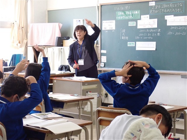 先週の金曜日に授業交流会があり、市内からたくさんの先生方が授業参観に訪れました。子どもたちは、どの学級でも集中して意欲的に学習していました。