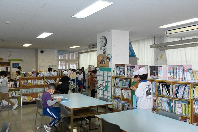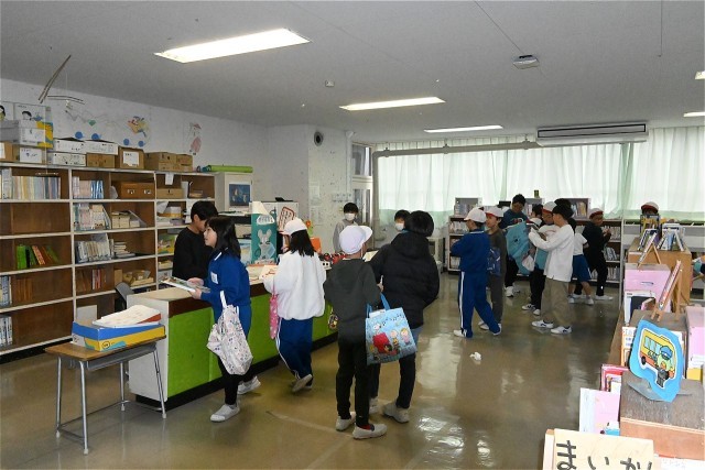 月曜日は2学期の図書貸し出し最終日でした。お昼休みになると、多くの子どもたちが図書館に集まってきました。