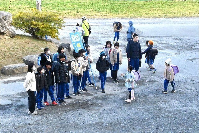 今月のあいさつ運動の担当は6年生です。あいさつ運動というとほとんどは登校時ですが、この二日間は下校時に「さようなら」が気持ちよく言えるように呼びかけを行っています。今日は登校時に行いました。あいさつは、いつでも、どこでも、だれにでも できるように取り組んでいます。下校時にあいさつ運動をやるのも効果的ですね。