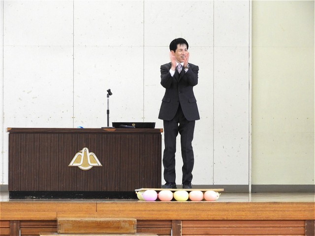 昨日は全校集会があり、子どもたちに協力することの大切さについて実演を交えて話をしました。風船が1個だと上から押さえると割れてしまいますが、30個あると大人が乗っても割れません。これには子どもたちも驚いて、大きな拍手をしてくれました。みんなで力を合わせるとすごい力を発揮できるということを説明し、3学期の残りを協力することを大切に過ごしてほしいと話を締めくくりました。この日はキッズアートフェスティバルと交通安全ポスターの賞状伝達も行いました。