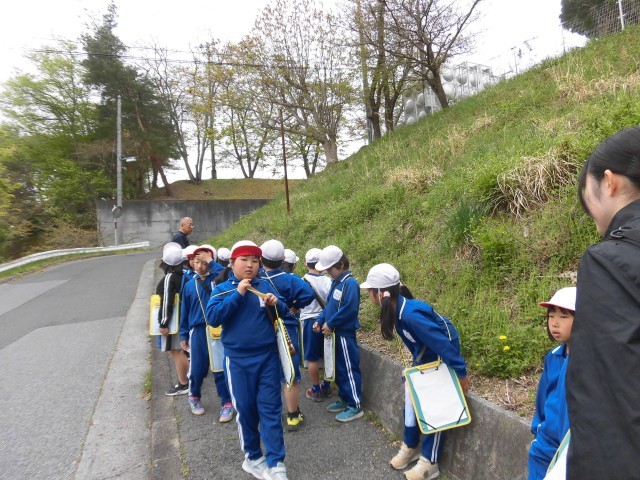3年生は社会科の学習で町探検を行いました。当初の予定は海側方面の探検でしたが、後発地震注意情報が発表されているので、山側の探検に予定を変更し実施しました。子どもたちは国道45号を北西方向へ歩きながら、お店やお寺、病院などを確認しながら町の様子を調べました。この学習は、3年生にとって「社会科」との出会いの単元となります。何度か探検した後に、白地図に地図記号や方位を使って町の特徴をまとめていく楽しい学習です。