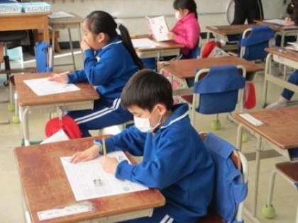 ※漢字の練習については、指書きや空書き、なぞり書きなどを適宜行いながら指導していますが、一番大切なのはふだんの生活で漢字をどんどん読み書きすることだと思います。本や新聞を進んで読ませていただけると大変ありがたいです。(大和田)