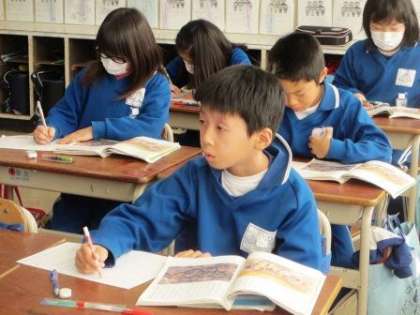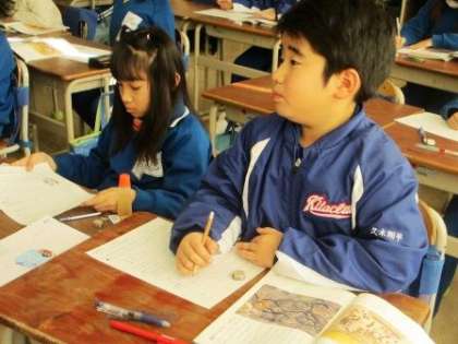 「人をつつむ形 〜世界の家めぐり」の学習で、セネガルの家のつくりと工夫について読みとっていきました。ワークシートを使いながら、みんなで一緒に読みを深めていったのですが、どの子もよく集中していて立派でした。子どもたちは、「どうして○○のようなつくりになっているのか」と理由を読みとるような場合に、「○○のため」とか「○○だから」というキーワードが無くても、しっかりと文脈から読みとっていました。最初悩んでい子どもたちの分かったときの「すっきりした表情」が印象的でした。(大和田)