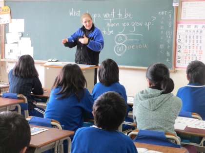 What do you want to be when you grow up ?というテーマで、様々な職業の言い表し方を習っていきました。次々に絵カードが提示され、テンポ良く「athlete(アスリート)」「news caster(ニュース キャスター)」「dentist(デンティスト)」など、憧れ(?)の職業をみんなで発音していきました。興味津々といった表情で授業に臨む子どもたちを見ていて、未来の大船渡を担っていくこの子どもたちの中から世界で活躍する人材も出てくるかも…という嬉しい想像もしてしまいました。(大和田)