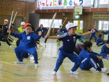 4年生と6年生で赤澤鎧剣舞の練習を行ってきています。