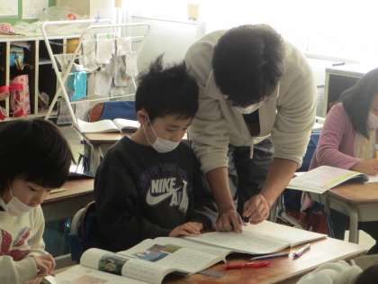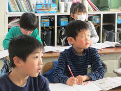 算数の学習では、図を使って問題を解く学習を行いました。先週の学習を思い出しながら、「図の一部を求めるには…」と真剣に考えていきました。立式をするとき、その拠り所になるのは、数量の関係を表したもの(図)です。子どもたちの頭の中に、確実に図が描かれるようになるくらい理解させたいものだと感じました。(大和田)