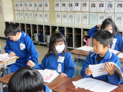 資料の調べ方の学習で、「正」の字を使って、表にまとめていく活動を行いました。教科書に掲載されている30個のけがを4種類(すりきず、きりきず、打ぼく、ねんざ)に分類していくのですが、なかなか正確に表にまとめることができずに苦労していた子もいたようです。最後にはみんなで確認して正しく表にしていきましたが、たくさんの子が正確に表にまとめることができなかったのは作業そのものに不慣れなためであるようでした。