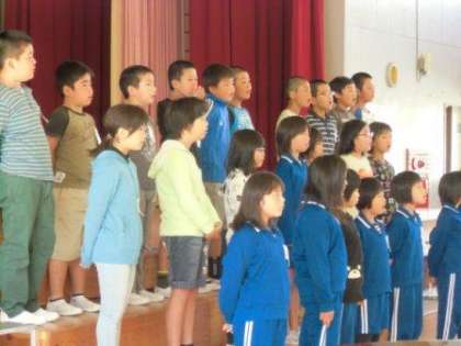 4年生は、体育館で歌の練習です。今日は、「夢見るジャンプ」の方を練習していました。音楽担当の先生の指導も入っていて、少しずつ声も出てきています。体育館一杯に響く歌声になるよう一人ひとりが気持ちを込めて歌っていきましょうね。(校長)
