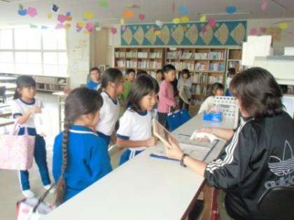 初任者研修での道徳の授業が終わって校長室に戻ろうとしたら図書室で低学年の子ども達が本を借りていたので写真を撮ってきました。2学期の読書の目標冊数もありますので高学年もしっかり本を借りて読みましょう。今は本を読むのにいい季節です。(校長)