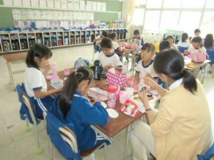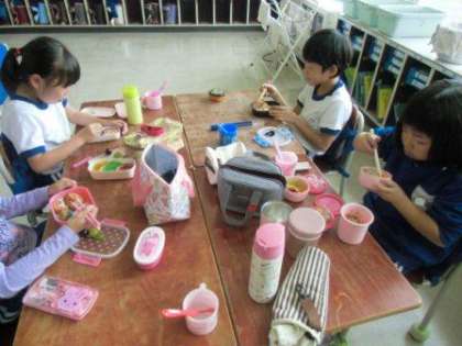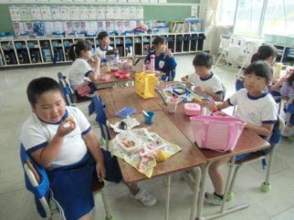 陸上記録会から今日まで、お忙しいなか、お弁当を作っていただき本当にありがとうございました。今日は2年始生の2つのクラスにお邪魔してお弁当を食べている子ども達の様子をとらせてもらいました。お母さん方はお忙しい思いをして作ってくださったお弁当は昼食の時間の子ども達の笑顔の変わります。給食なしの日が5日間あったので、お弁当も5回作られたことと思います。兄弟、姉妹がいれば数はさらに増えますが、今日まで本当にありがとうございました。(校長)