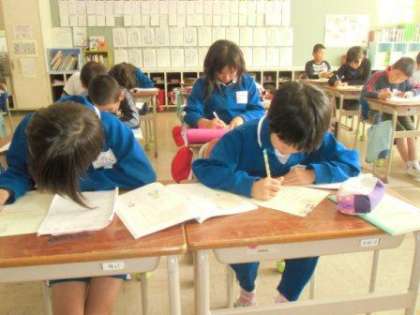 4年生の国語もお礼の手紙をかいていました。先週行った遠足で行ったさいとう製菓かもめの卵工場や市立博物館にお礼のお手紙です。すぐに書ける子となかなか書けない子もいるので大変ですが、お世話になったらお礼の手紙を書くと言うことをしっかり身についていきましょうね。大人になっても必要ですから。(校長)