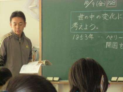 6年生は社会の学習です。ペリーが浦賀にきて開国を迫るのですが、その時の政府の対応について学習していました。アメリカがなぜ鎖国をしていた日本に開国を迫るのか。 開国すれば日本はどう変わっていくのかについてそれぞれの国の考えが出てきます。これによって世の中が大きく変わっていくのですからとても重要な内容ですね。子ども達は、いろいろ考えながら自分の考えも発表していました。(校長)