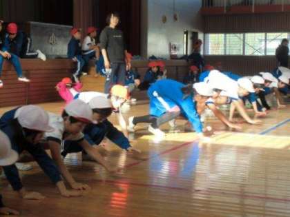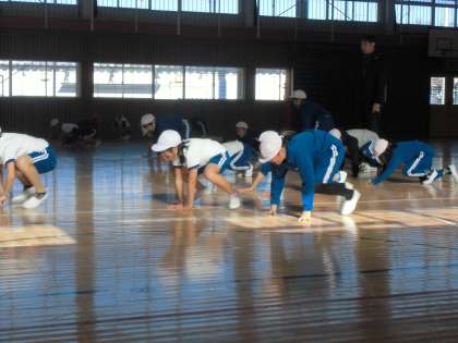 3年生は合同で体育です。体を動かし体力をつける運動を行い、マット運動です。自分達で道具を用意し、決まった場所で練習です。体の柔軟性が気になりますが、いろいろな運動でバランスよく成長できるといいですね。(校長9