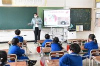 先生や友だちの好きなものを予想する○×クイズでは、英語を正しく聞き取り、いろいろな予想を立てる子どもたち、とても楽しく学習していました。英語での質問も上達していました。
