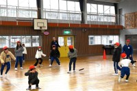 ●麦ご飯●牛乳●棒餃子●菜花ともやしのナムル●麻婆豆腐『今日の給食の麻婆豆腐には、挽肉と一緒にひき割り大豆が使われています。大豆を食べてもらいたいので、給食には時々一緒に使ったりしています。また、ナムルには、春を感じさせる菜の花を使用しました。すこしほろ苦い大人の味を味わいました。給食室の様子です。約330人分の給食を頑張って作っています。』(磯谷)