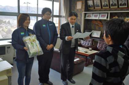 12月13日にファミリーマート様からベルマークの寄贈をいただきました。東北管内を回っていらっしゃるスーパーバイザーさん,地の森店の店長さん,マイスターさんがいらっしゃいました。東北で数人というマイスターさんは本校保護者。すごいです。今後もまた,いろいろと学ぶ機会があるかもしれませんね。ありがとうございました。
