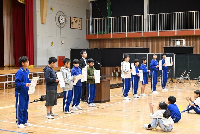 昨日の全校集会で、市内陸上記録会と校内800Mチャレンジ大会の表彰を行いました...