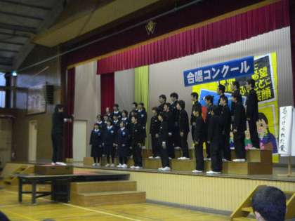 そこで、一番注目されているのは、「合唱コンクール」です。1〜3の学年の中から最優秀賞、優秀賞を決めます。今年度の最優秀賞は、1年2組、2年1組、3年1組でした。特に3年1組は立ち位置を離し、とても大きい声量で一人一人がしっかりと目立っていました。